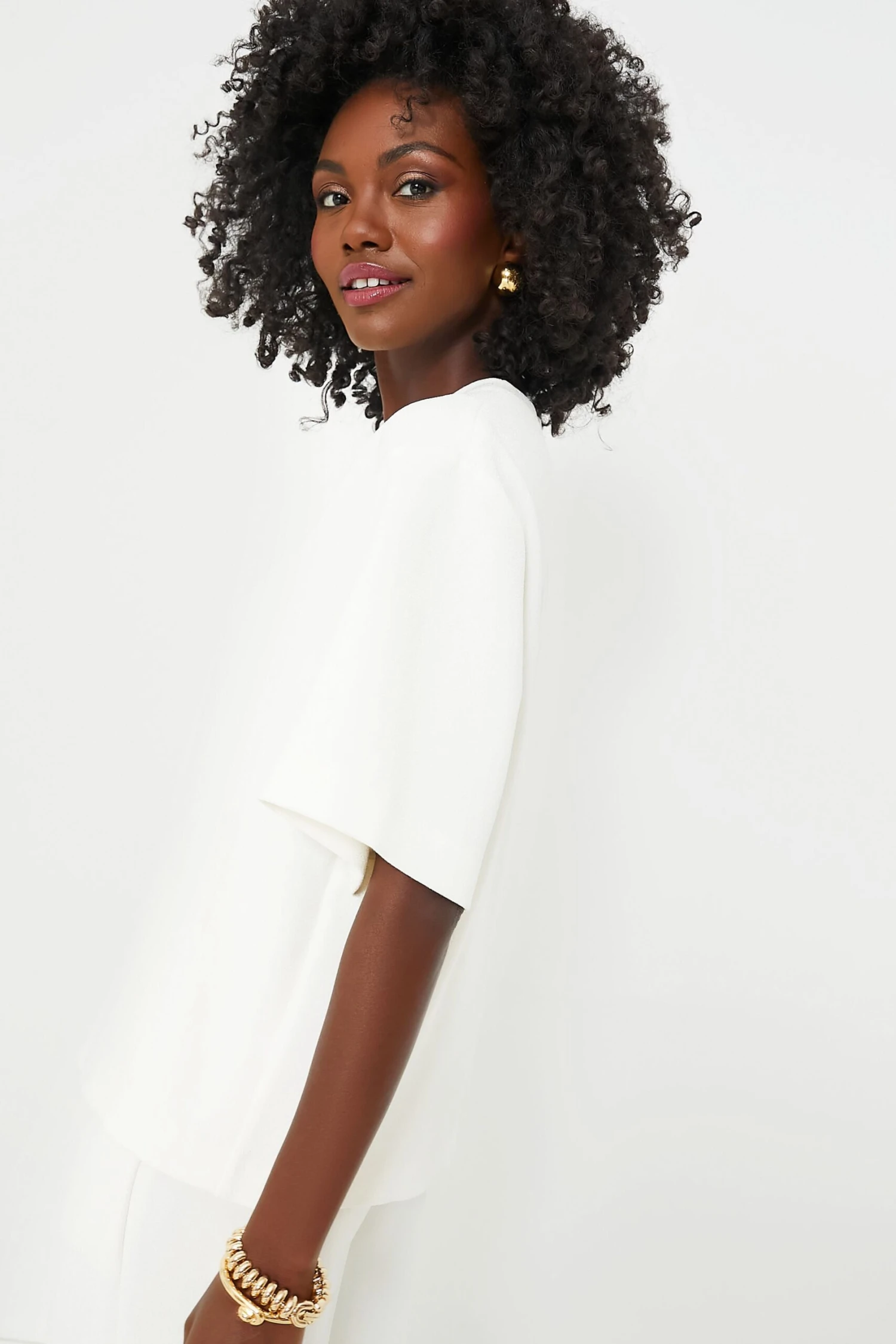 We know it can be difficult to find those perfect core pieces you’ll wear again and again, so we made it simple and brought you the Ivory Maddie Top. Designed for an oversized silhouette in a soft textured crepe fabric, this everyday style features a clean crew neckline, wide elbow-length sleeves, and an invisible zipper at the back neck. Pair it with the matching Ivory Lyra Trouser for a mono-tone chic look or throw on a pair of denim, a mini skirt, or shorts– you name it– the possibilities are endless for this classic wear everywhere number.