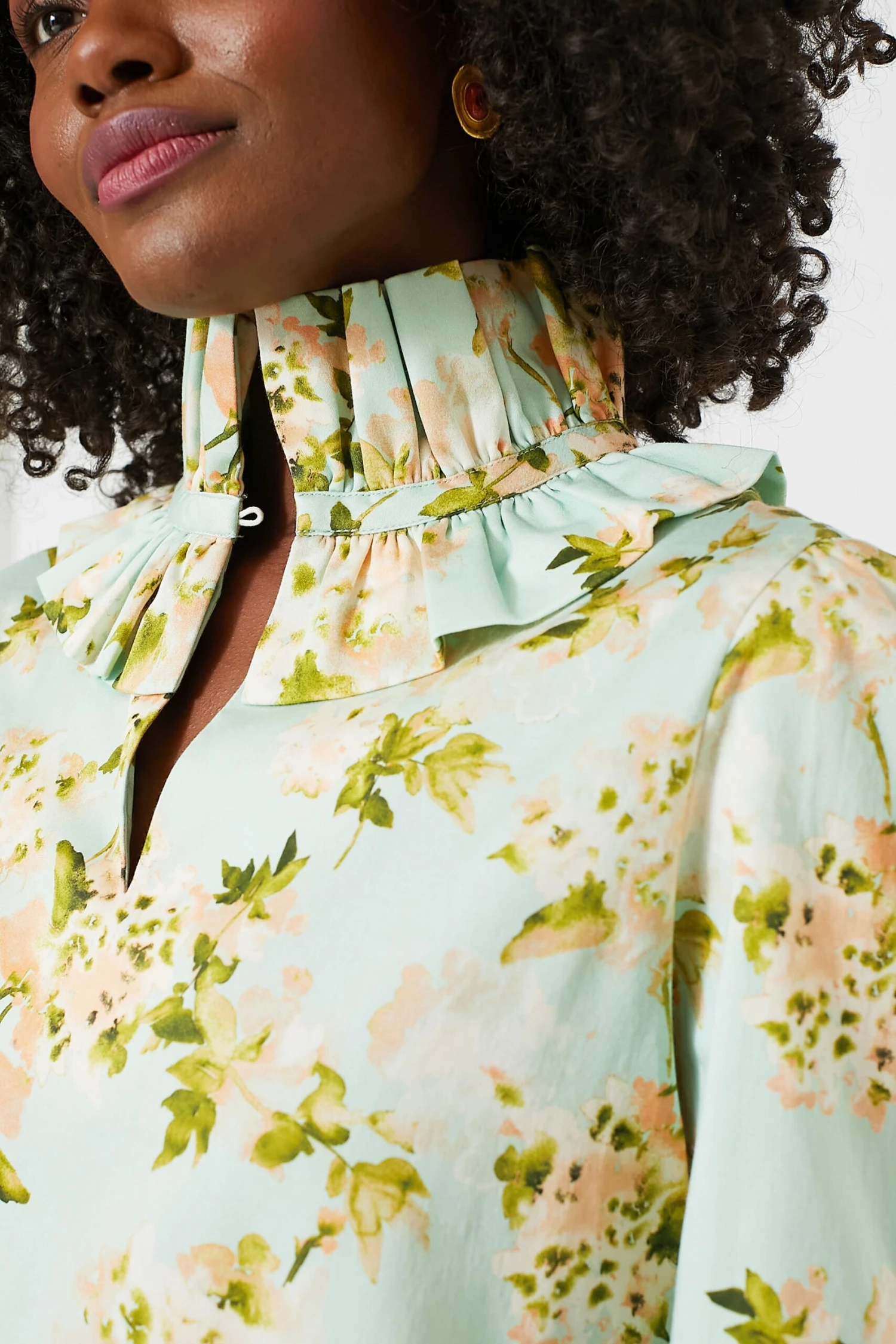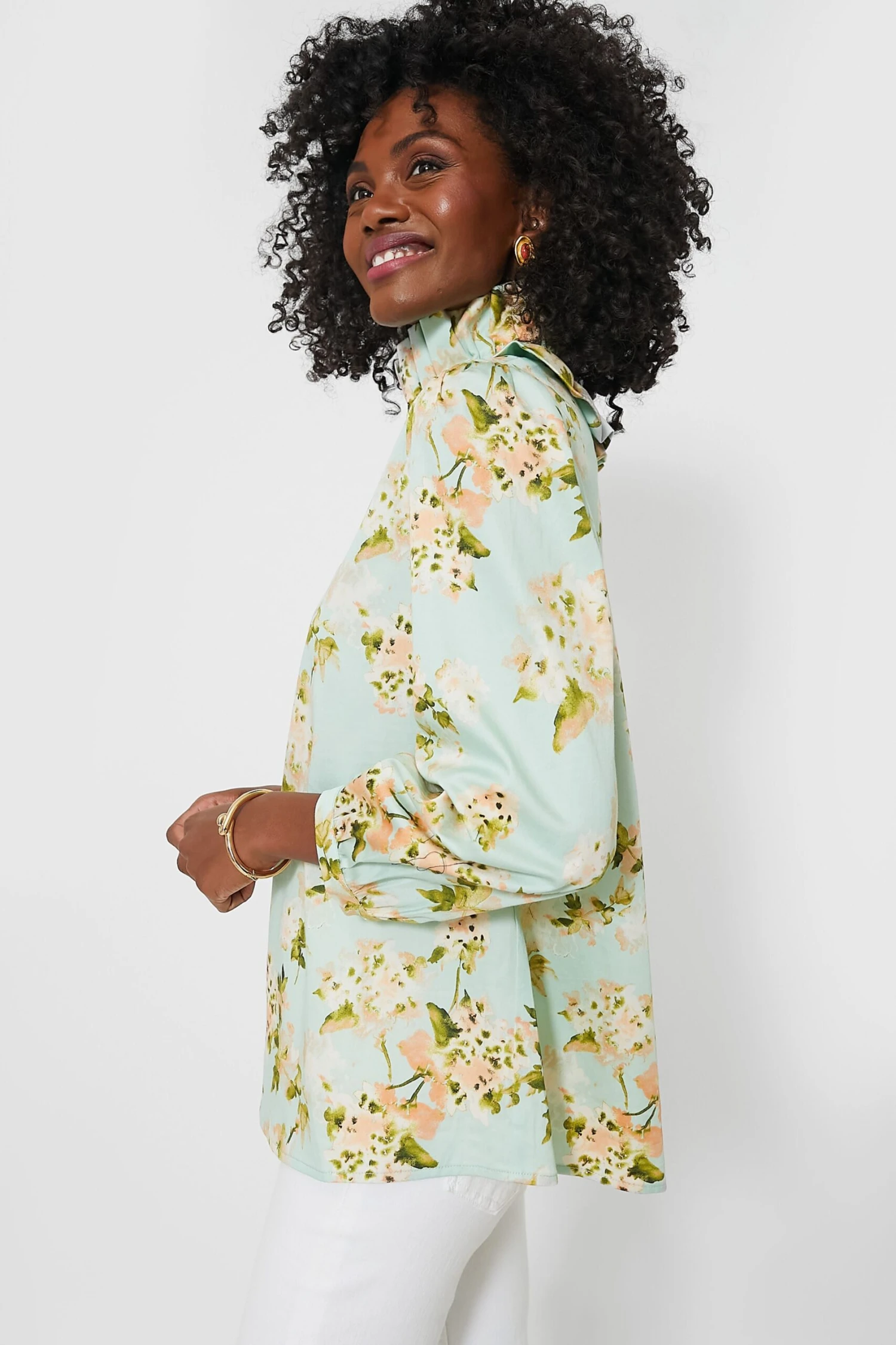 The Aqua Watercolor Bouvier Blouse is the perfect combination of femininity and sophistication. A stand ruffle collar plays well with the fresh botanical print full of pink, green, and blue shades. Equally appropriate for Sunday brunch or special celebrations, it’s no wonder this blouse is a Tuckernuck favorite. We are pairing this stunner with go-to denim and classic flats for a subtle look, then swapping for heels and gold accessories for evening festivities.
