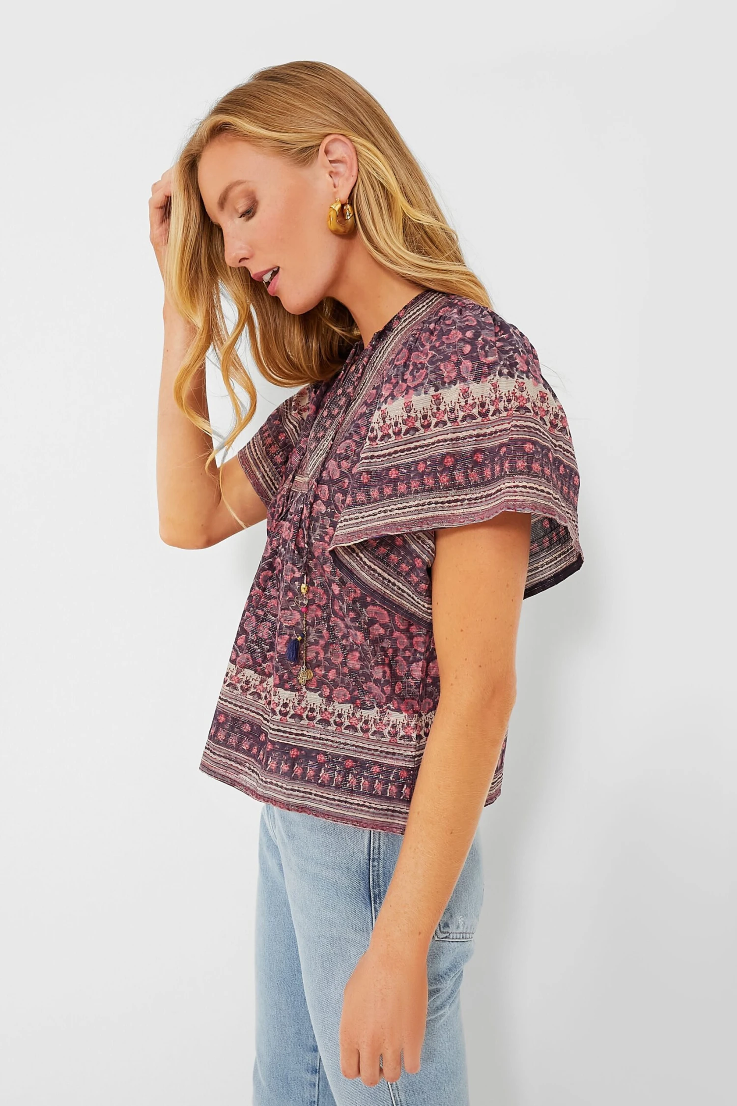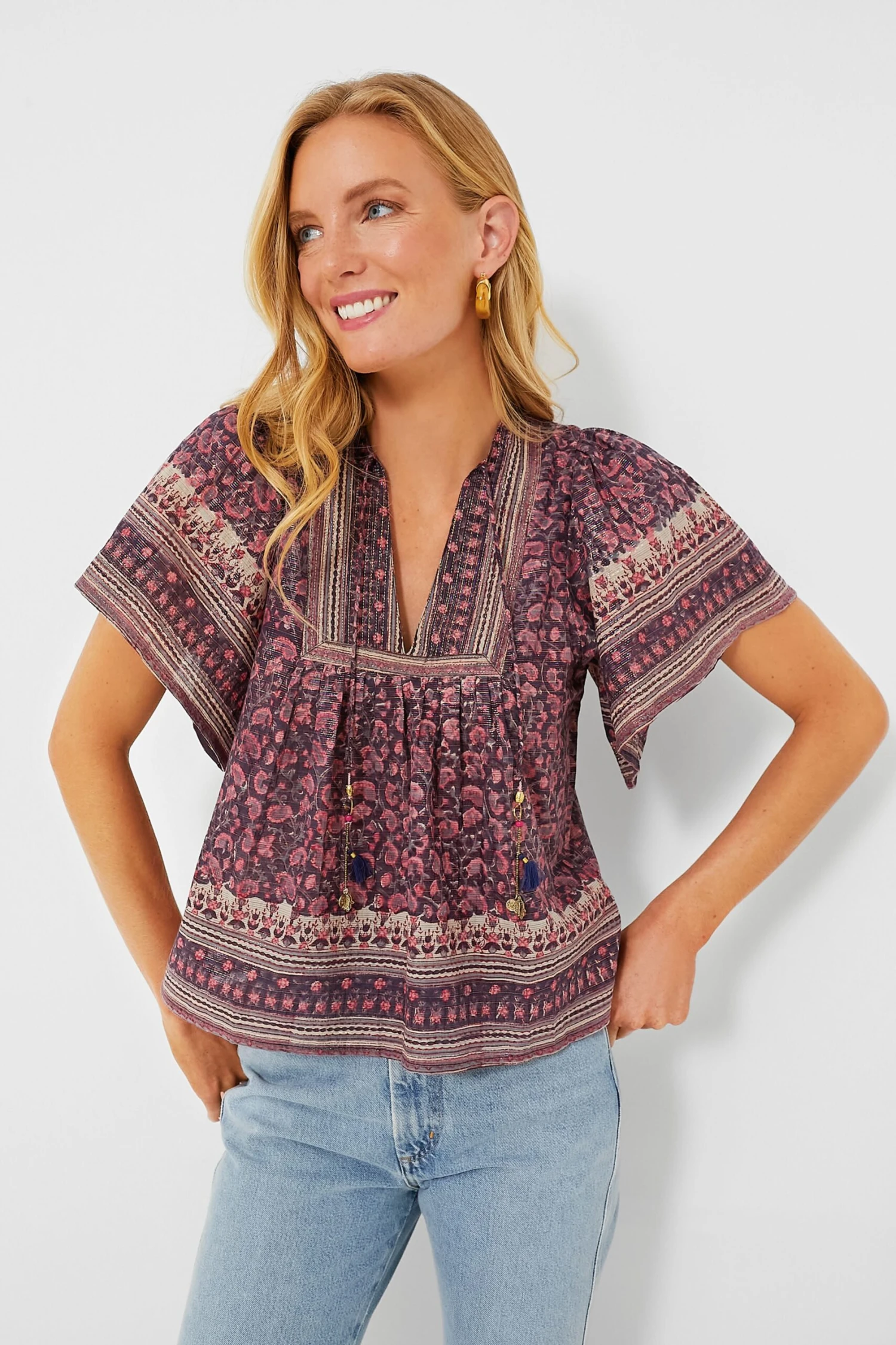 The Angel Top has us feeling up in the clouds! Beautifully crafted from a cotton blend in rich brown and pink hues, this boho-chic stunner features a V-neckline with beaded tassel details, short flutter sleeves, and a relaxed fit for easy movement. Style with denim and wedges for a casual-chic look, or pair with denim shorts and sneakers for backyard dinners, lemonade stands, and other fun in the sun!