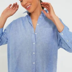 Cool, chic, and sophisticated- the Champagne Clemens Blouse is a closet must-have. Complete with an oversized collar and mother of pearl buttons, this top displays elegance and grace while still being functional and easy to style. Versatile enough to be dressed up or down, we are pairing this with a midi skirt and flats for the office, or with denim and sneakers for a weekend picnic.