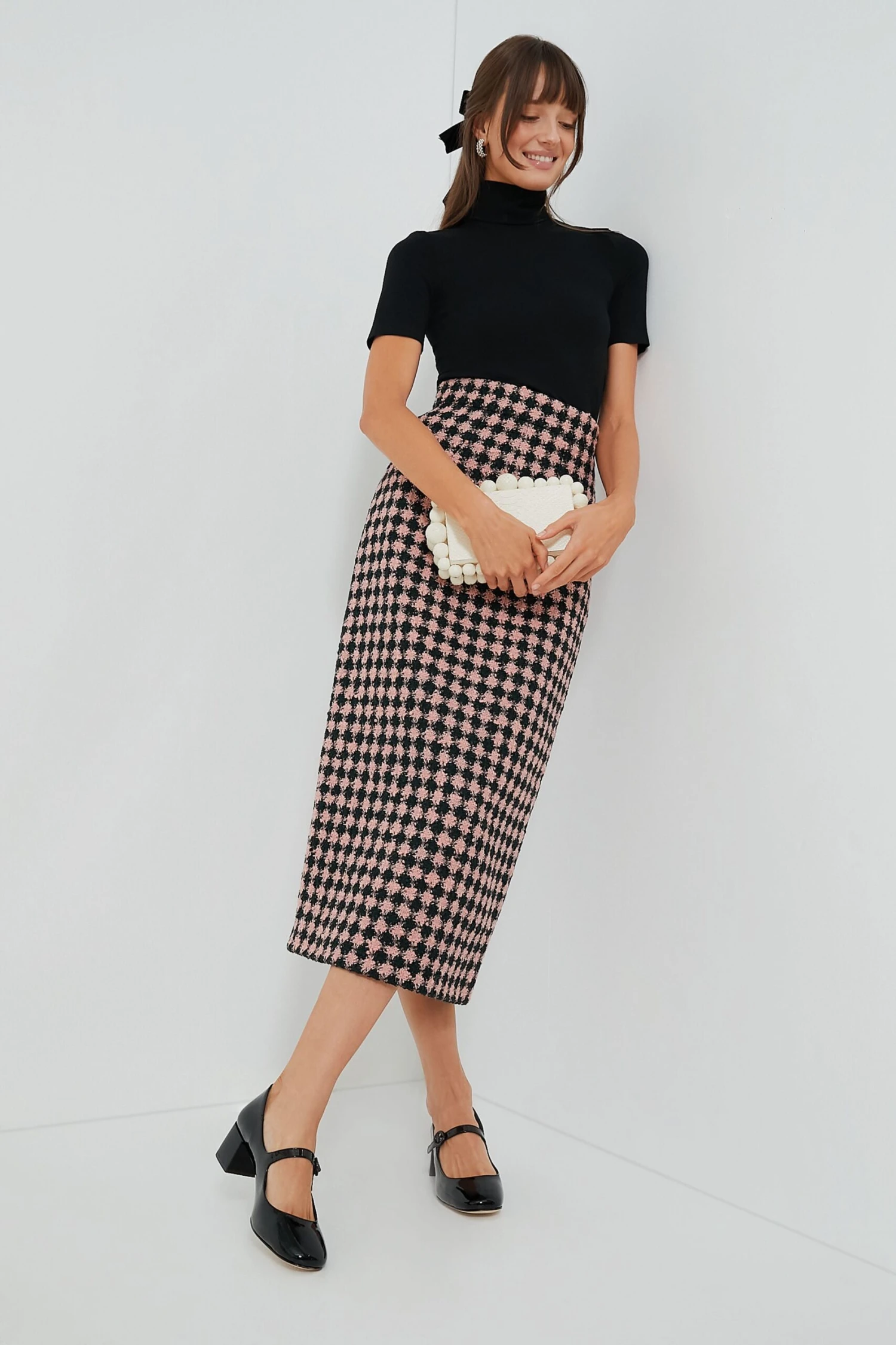 Dark Green And Pink Lorinda Heritage Wool Skirt