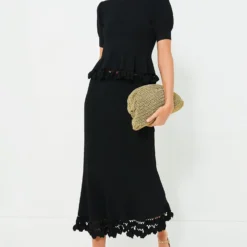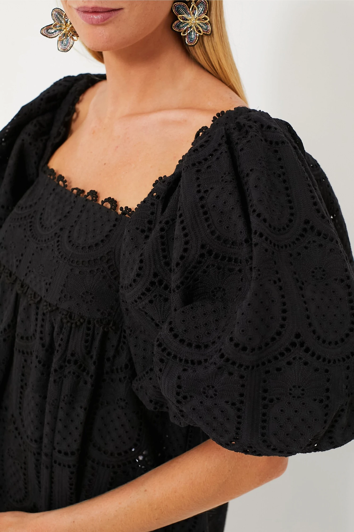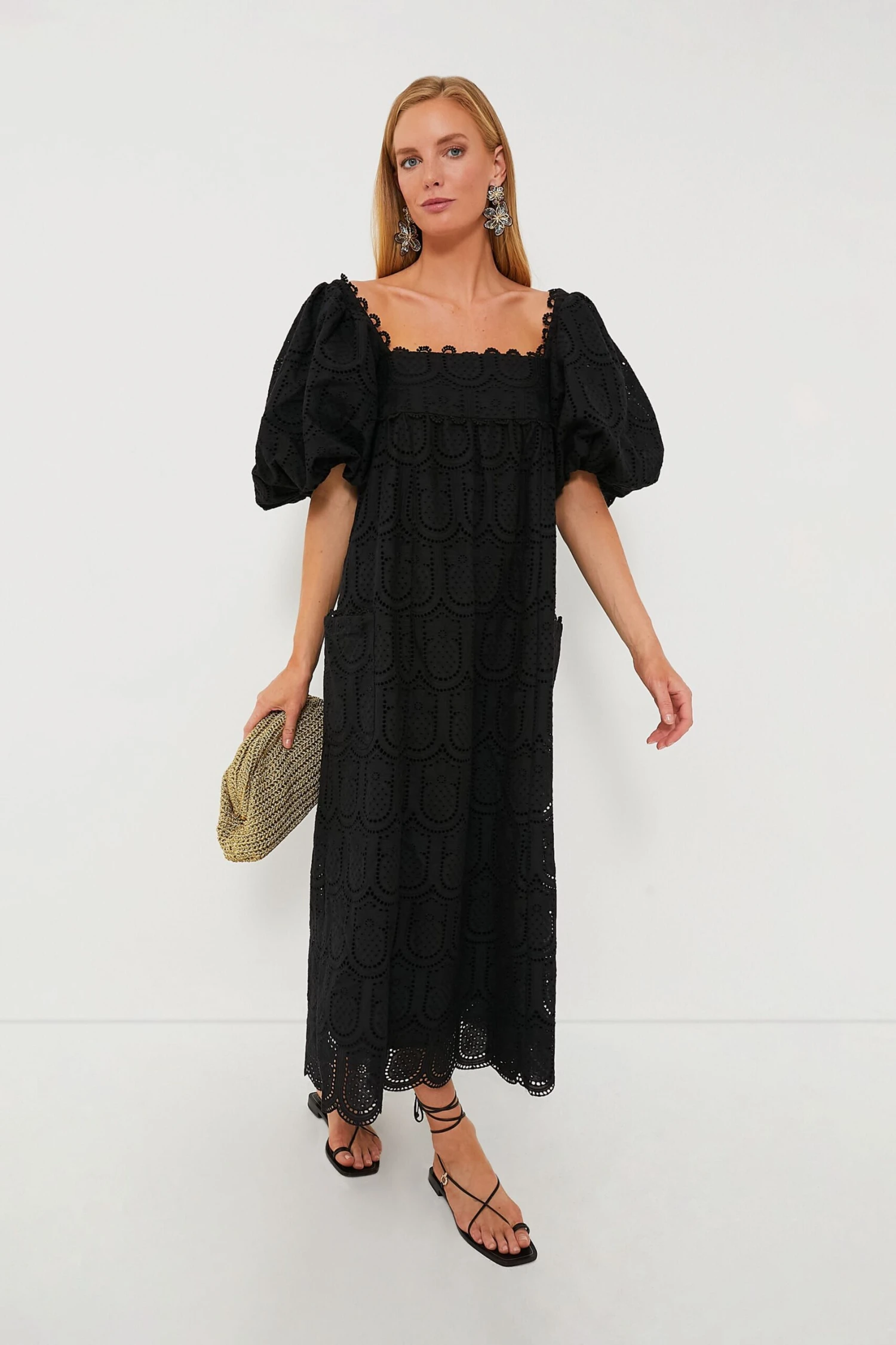 Farm Rio Black Pineapple Cotton Eyelet Maxi Dress
