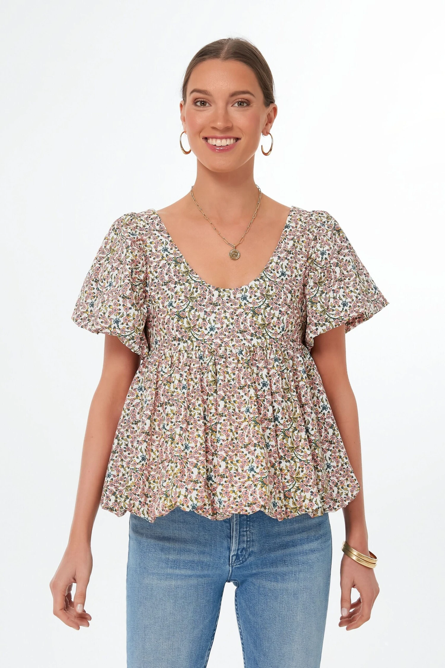 It’s hard to pick our favorite detail of the Virginia Blouse! Constructed out of a beautifully unique floral print, this flirty top features an empire silhouette, puff sleeves, bubble hem, and a scoop neckline begging to be accessorized. Pair with your favorite jeans, raffia accessories and gold jewelry for al-fresco drinks!