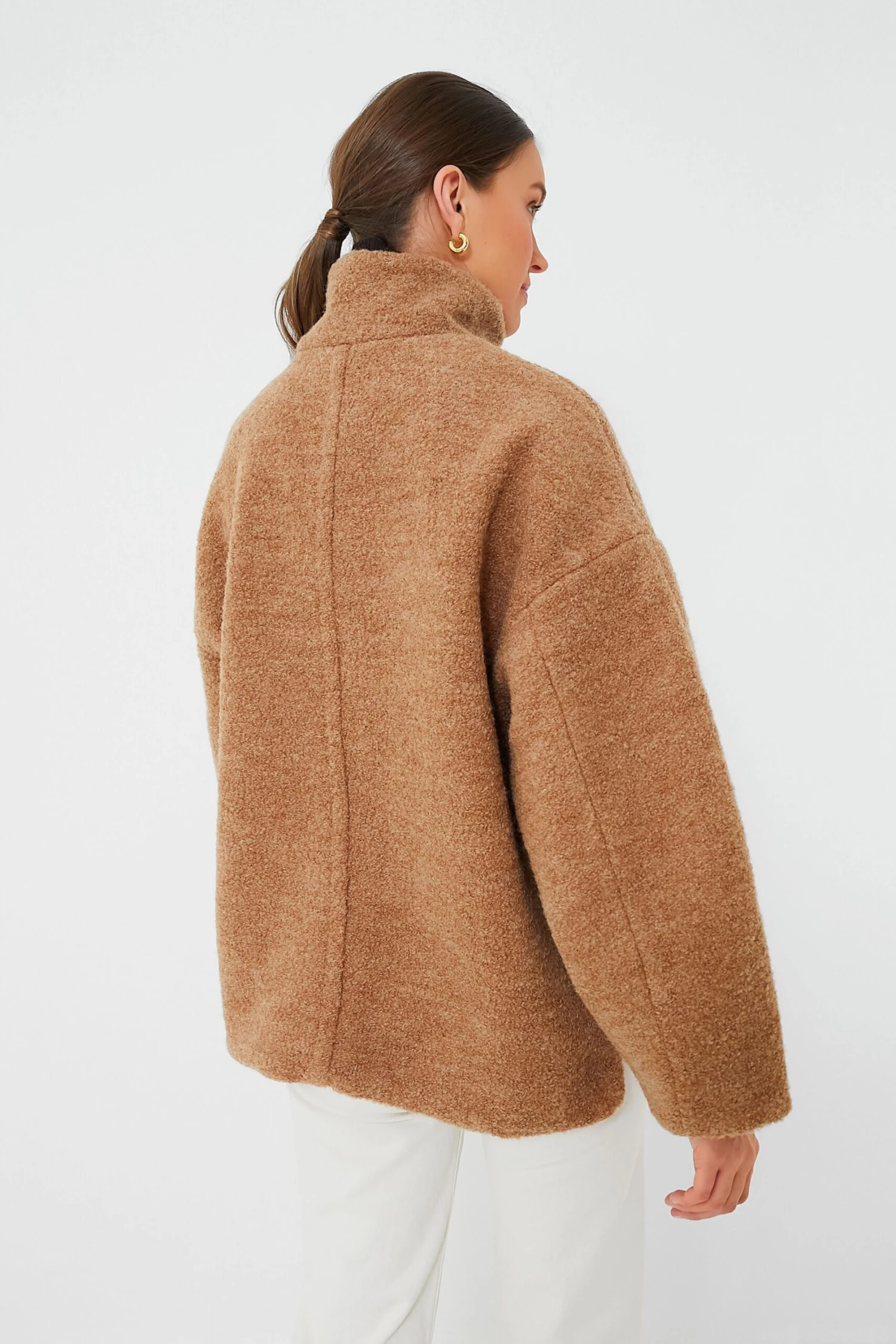 Taking your look up a notch is effortless when you have the Tiger’s Eye Boucle Wool Jacket. Crafted from heavyweight, textured soft recycled fabric, this layer is designed for an oversized fit and features dropped shoulders, toggle buttons, asymmetrical closing and patch pockets with a snap button closure. Throw on over any of your ‘fits for an upgraded vibe!