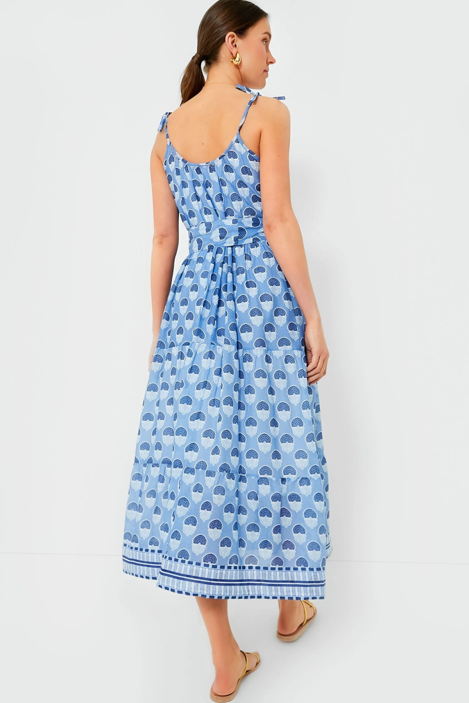 The Indian Flower Siesta Dress is a timeless silhouette with a vibrant blue pattern that will carry you from the beach to beyond! This midi features self-tie straps and waistband for perfect fit, and is complete with a front button placket and an airy tiered skirt that allows for all day comfort and ease. A statement on its own, simply pair with flats or sandals and jewelry for a go-to look.