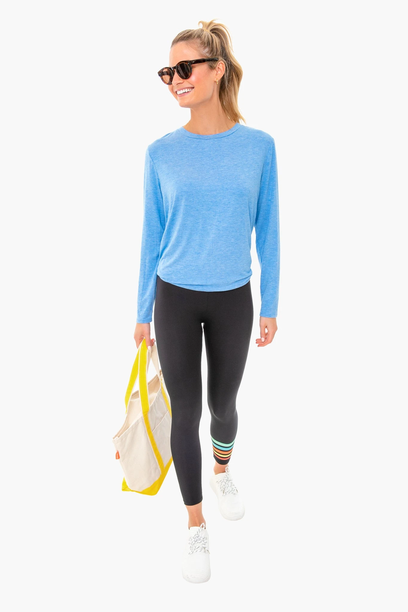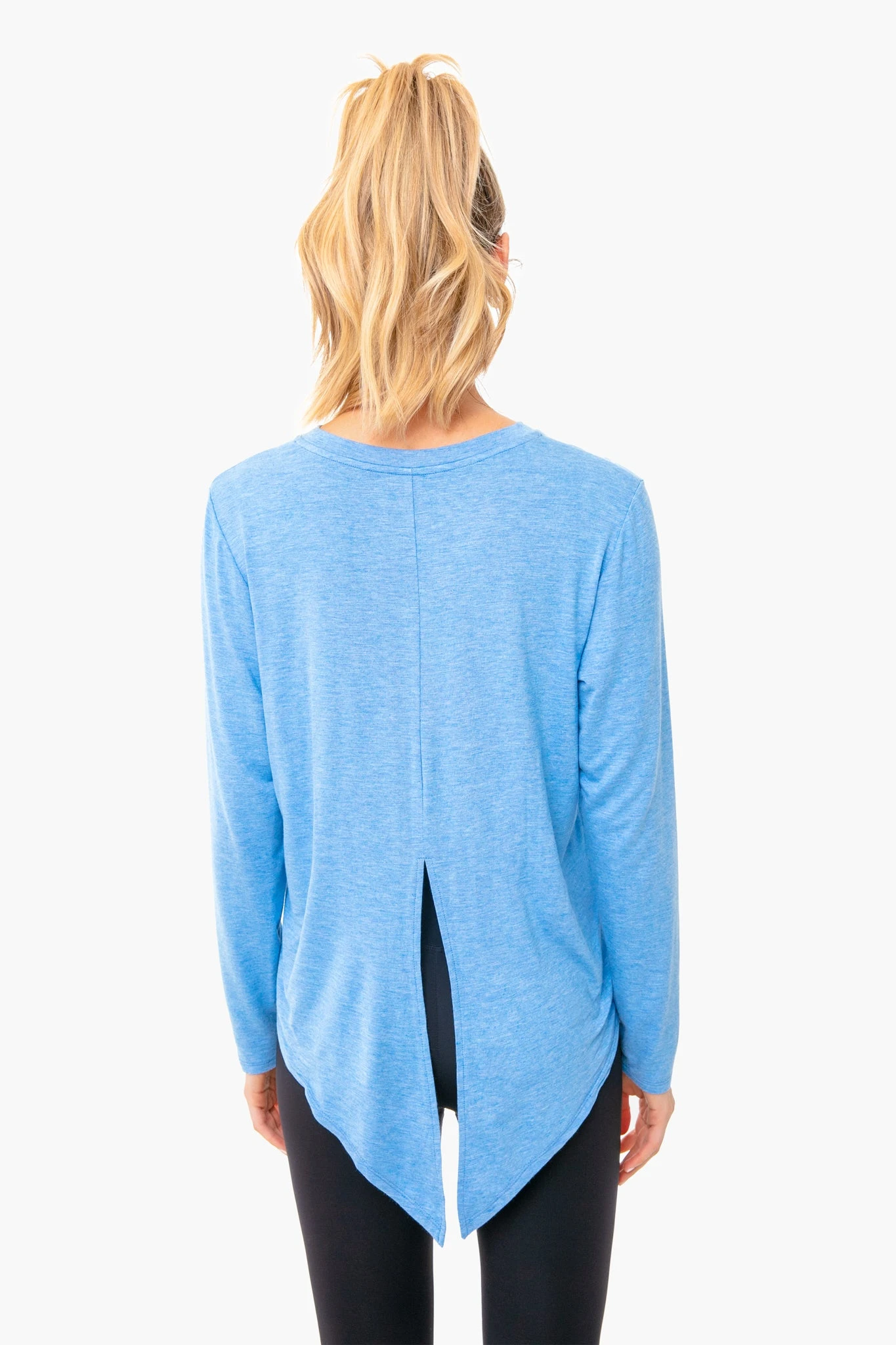 The Light Blue Heather Tie Back Long Sleeve Tee is a fun twist (no pun intended) on the classic top. The lightweight fabric makes it ideal for wearing over a sports bra for errands or for workouts, while the elegant tie allows you to adjust the length for the look you want. Pair with leggings and sneakers for cool-girl weekend style.