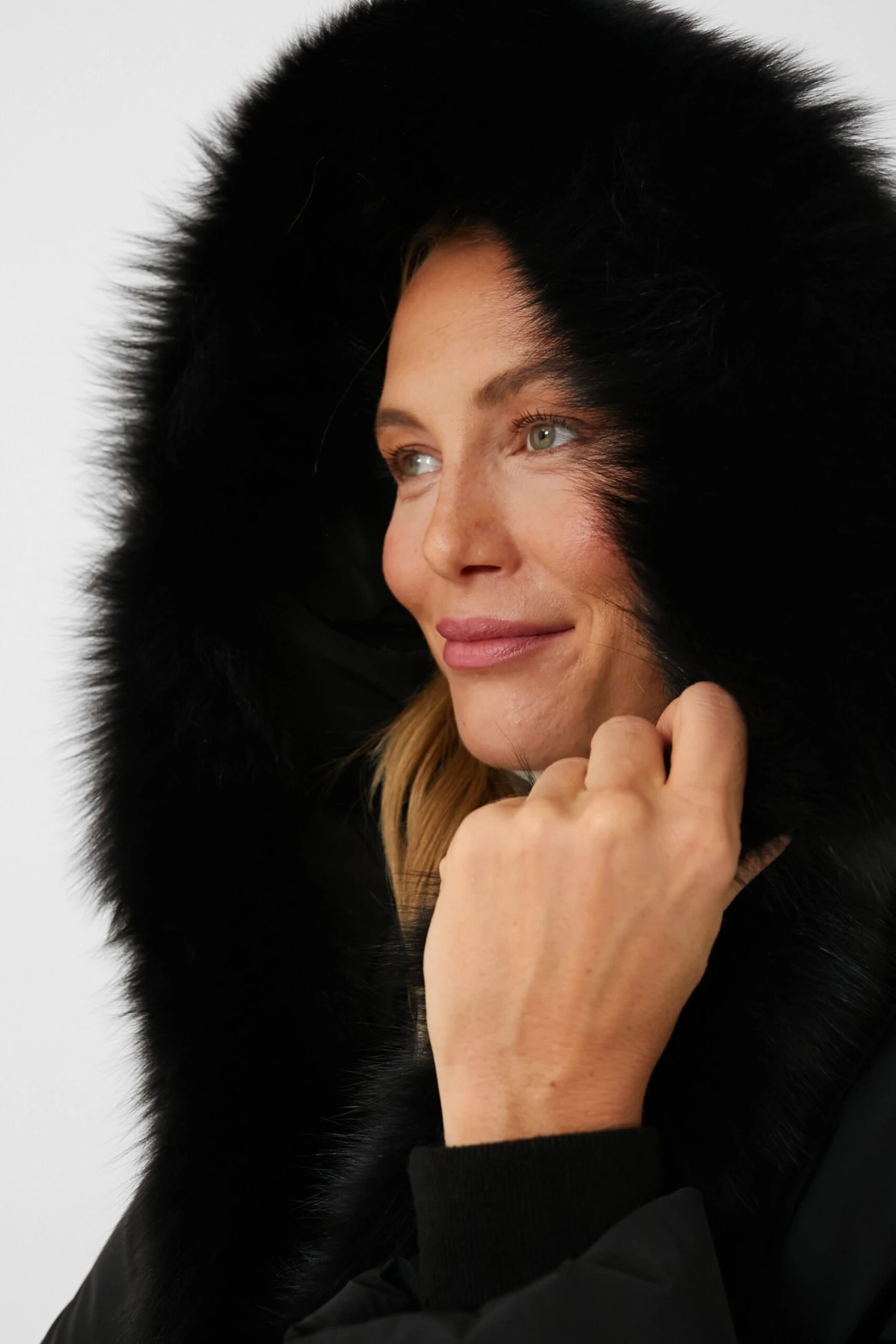 - Fur trim around hood