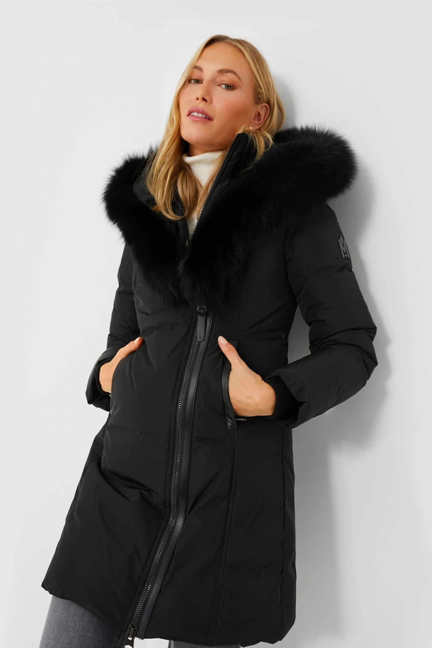 The Black Kay Down Coat was made for keeping you warm on the deepest, darkest winter days. With a dual layer design, the inside bib features a ribbed collar to keep out the wind, and the outer layer has a luxurious fur-lined hood and an asymmetrical zip closure to keep things interesting. Wear this piece of outerwear on chilly, snowy days and remain just as fashionable as ever in this beautiful longline puffer.