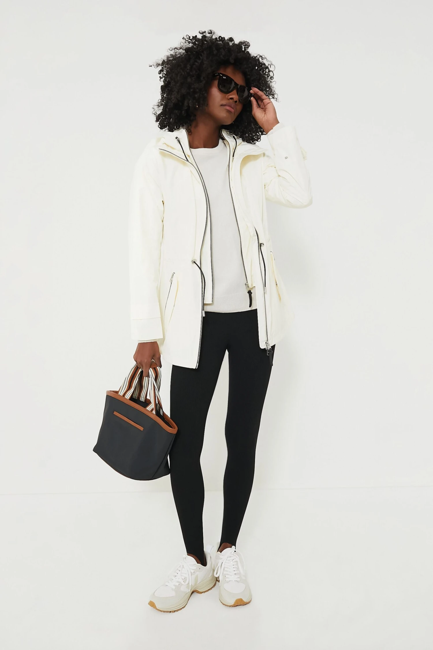 The Cream Melany Jacket is a mid-length rain parka that is perfect for staying dry while still showing up looking your best. Featuring a removable bib with an adjustable hood, a semi-fitted silhouette with a drawcord waist for cinching, and adjustable cuffs, this number was meant to perform at high-function while still creating a perfectly tailored and flattering number. Get the day started and don’t let the rain get to you as you head into the office or your morning workout class with this water repellent piece!