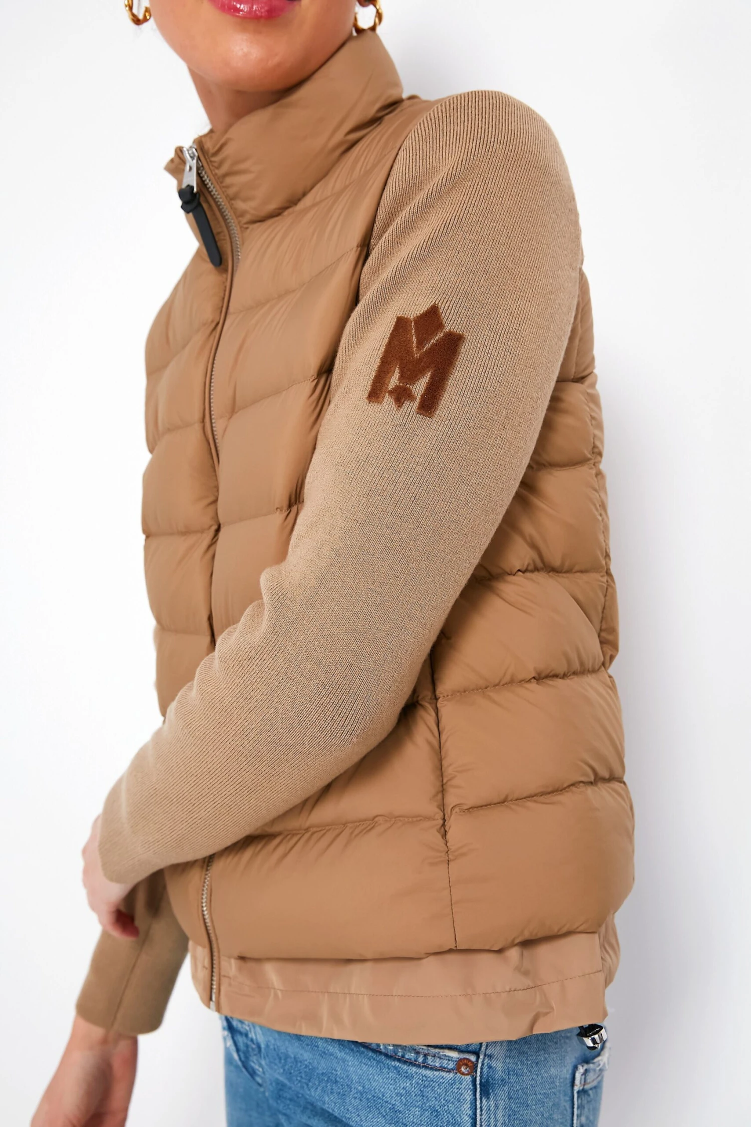 The Dark Camel Oceane-Z Jacket is a mixed-media cardigan that combines the warmth of a full down coat with the coziness of soft knit sleeves. A transitional style with a relaxed fit, this coat flaunts a recycled quilt shell, stand collar, and invisible side pockets for functional and chic additions. Perfect for those days when you’re not sure where the weather will take you, we are pairing this with every and anything from denim to sweats for all day comfort.