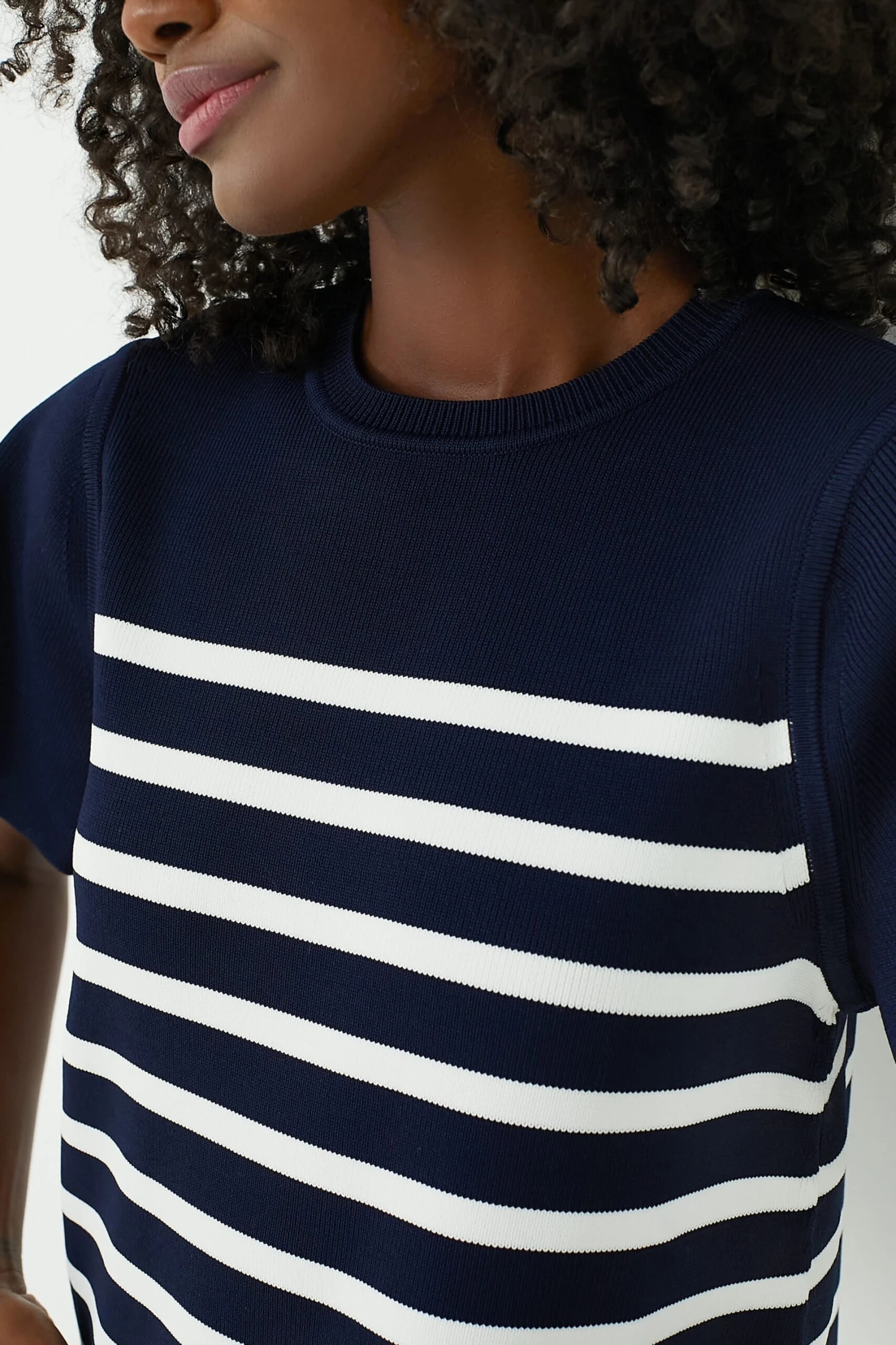 - Ribbed crew neckline