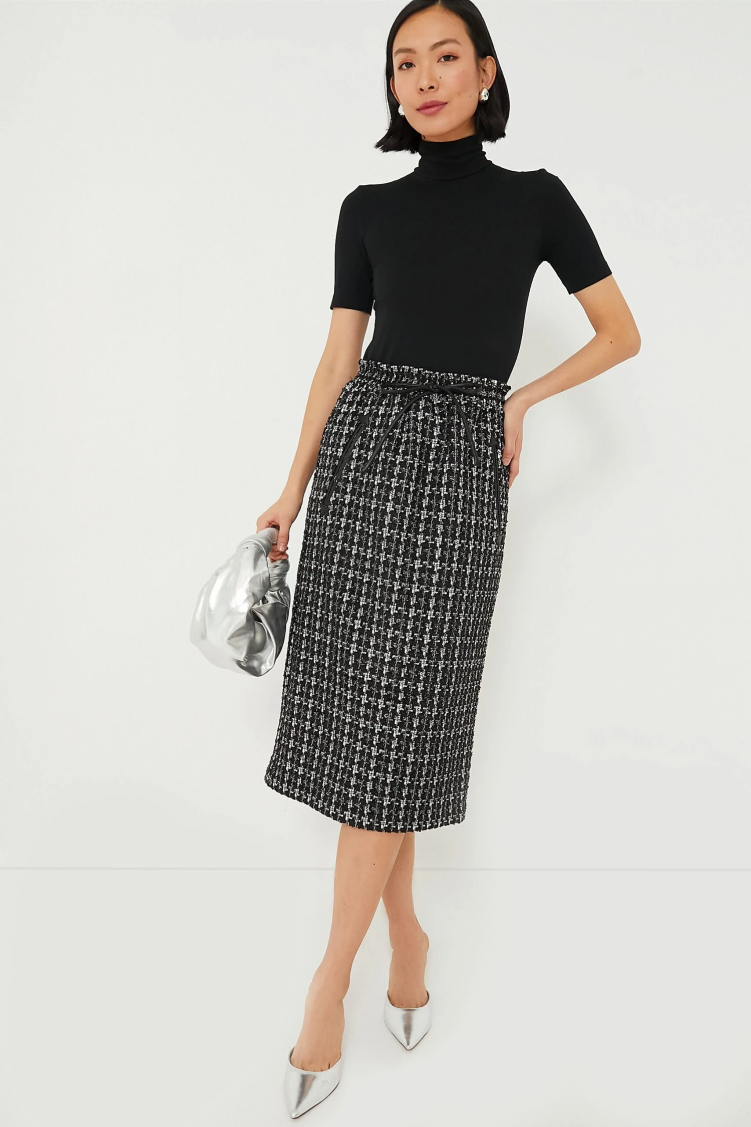 Tweeds are the ultimate trend lately, and the Onyx Cece Skirt does the look well. Neutral enough for daily wear yet bold when it needs to be, this midi packs comfort thanks to its elasticated waistband as well as elegance with leather trims and a luxe textured material. Throw it on with boots or heels, a sweater or a silky blouse, really anything goes with this darling silhouette.
