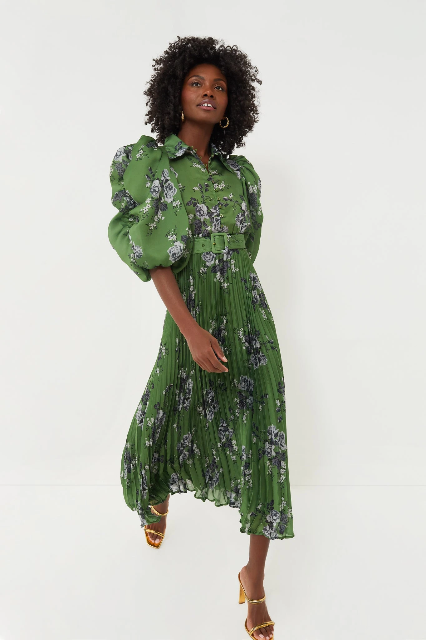 Fun, floral and sophisticated defines the Plissé Maxi Dress. It’s all in the details, like the shirt collar, fitted bodice, pleated skirt and the voluminous ruched sleeves, all adding to the feminine charm of this flirty frock. But our favorite feature is the removable matching waist belt that allows you to create a cinched silhouette! Pair with heels, statement earrings and clutch for a cocktail party and dance the night away!