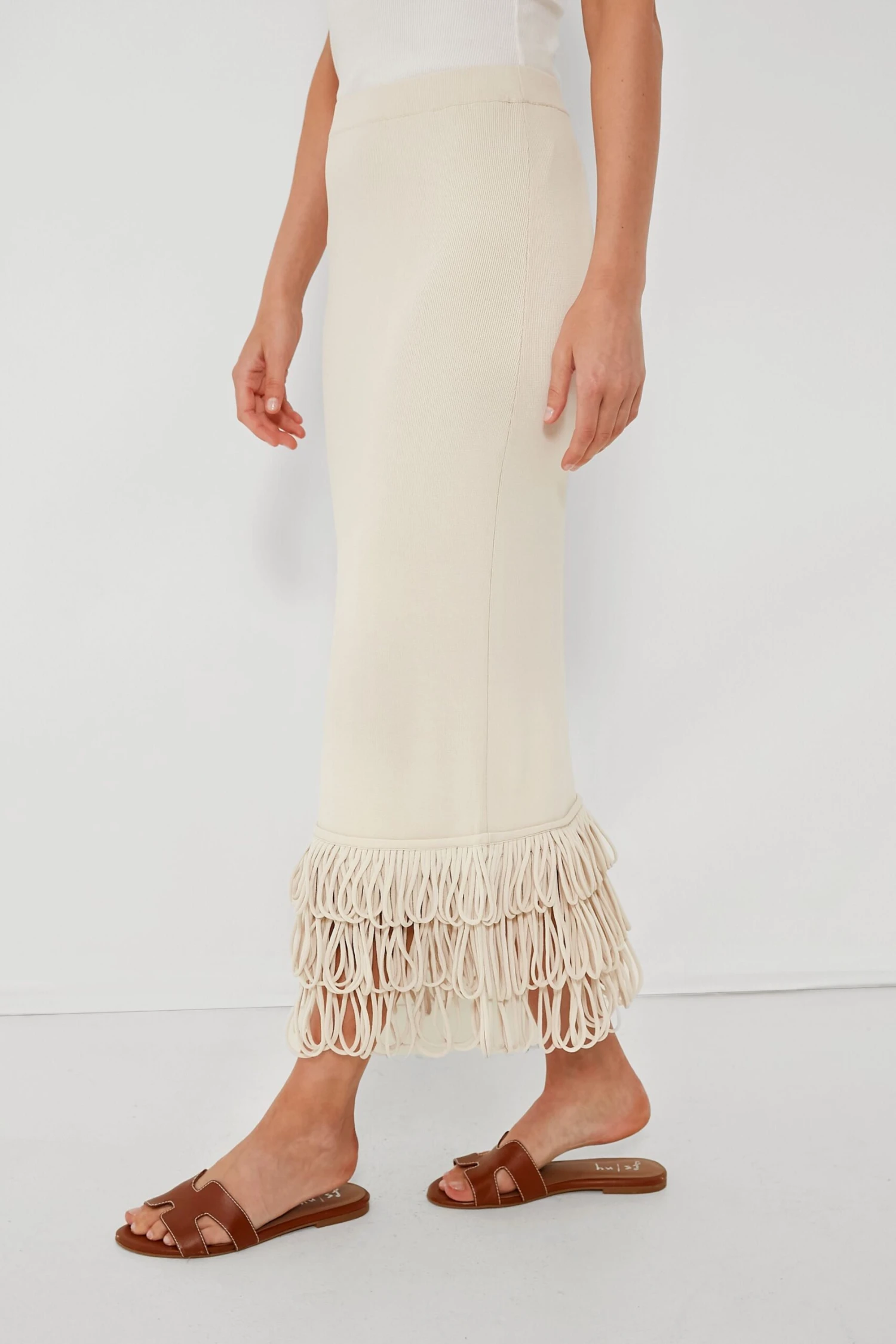 - Layered loop fringe hem