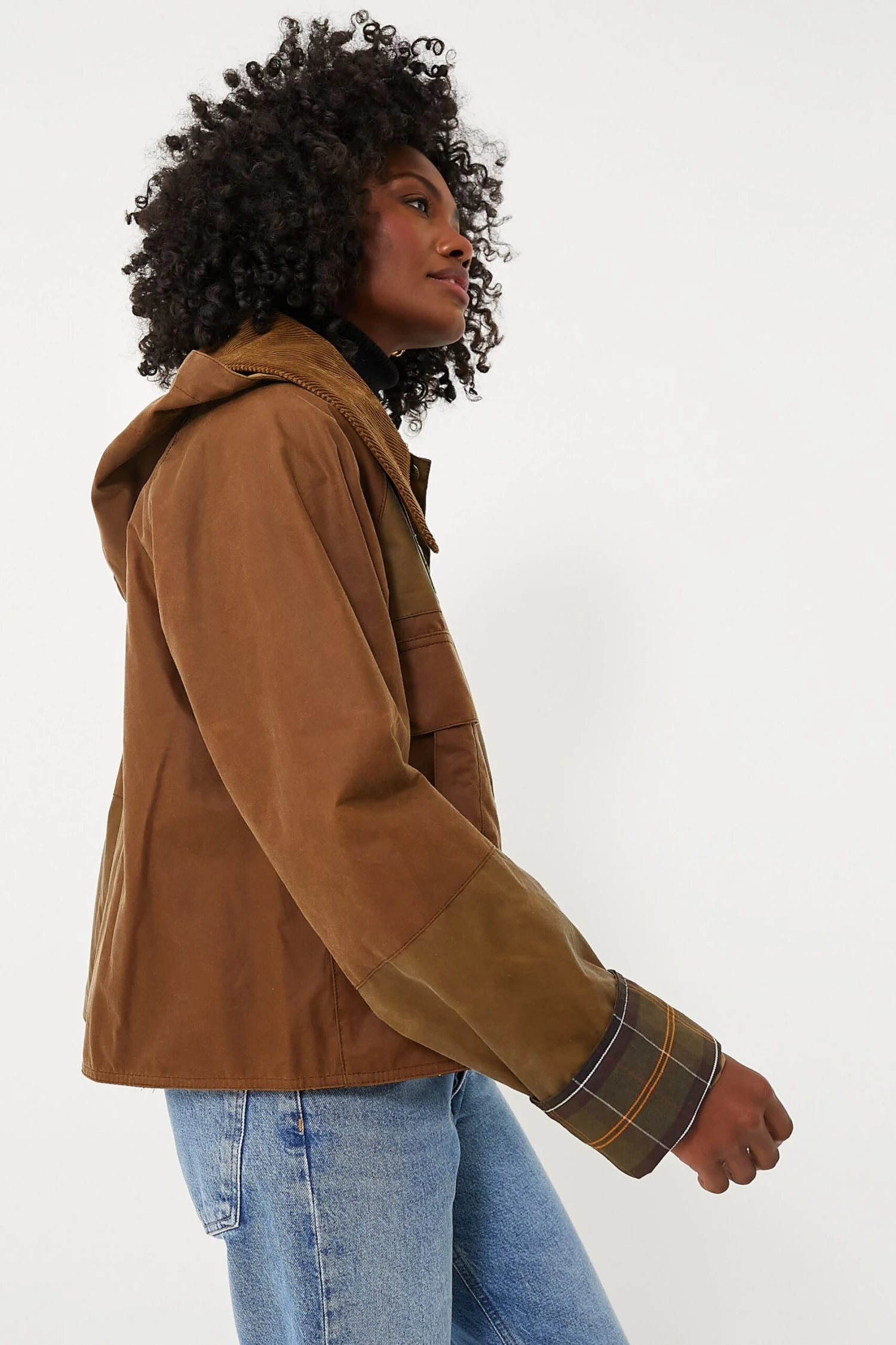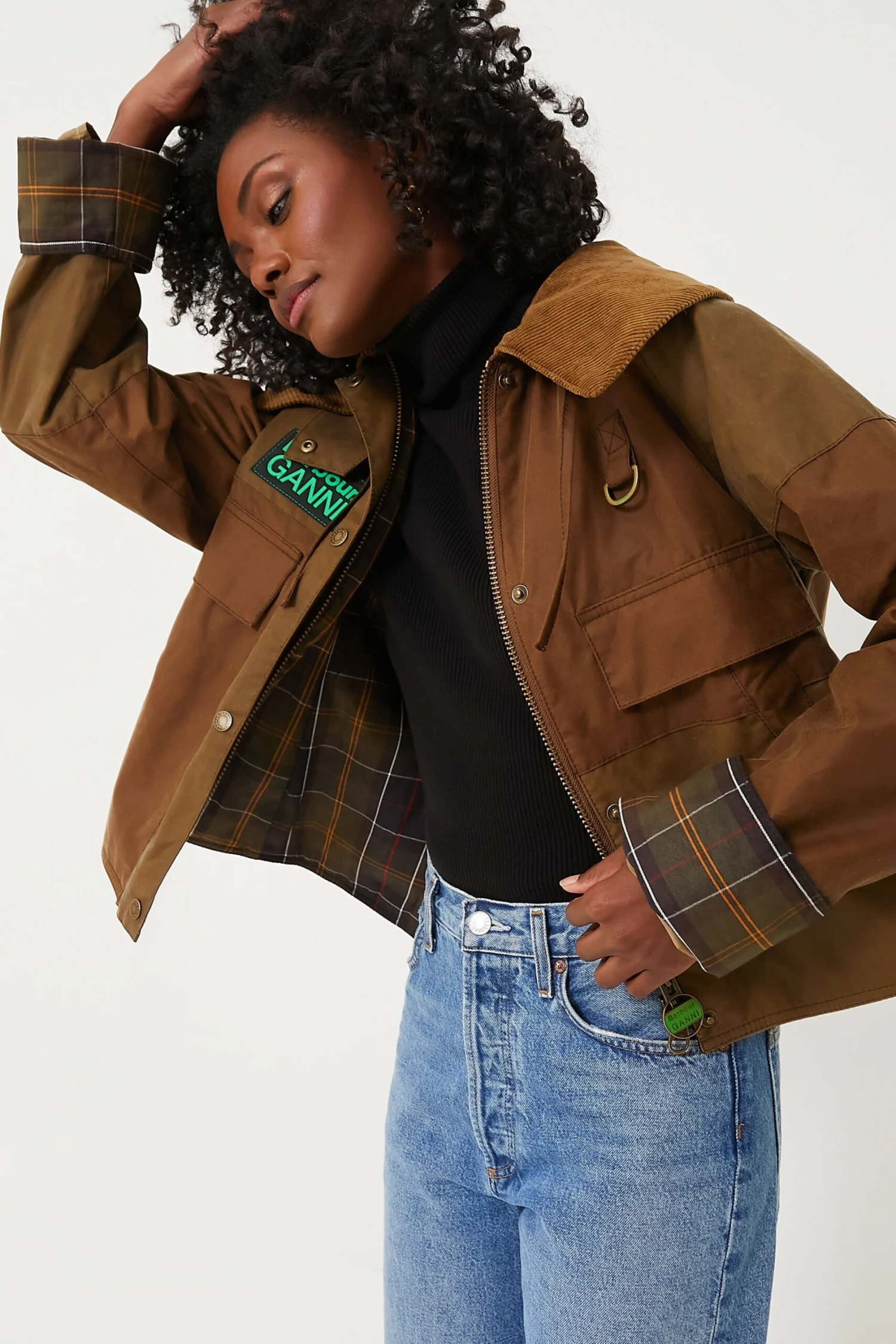 The Tan Sand Barbour Ganni Block Spey Jacket marries fun and fresh looks with classic styling, showcasing the core of both brands. The waxed cotton fabric, corduroy detailing, and tartan lining are Barbour’s signature features, while the fun proportions, oversized collar, and patchwork design are fresh features from Ganni. Pair this chic little coat with your go-to denim, boots, and oversized sunnies for a cool look that’s sure to earn you some compliments.