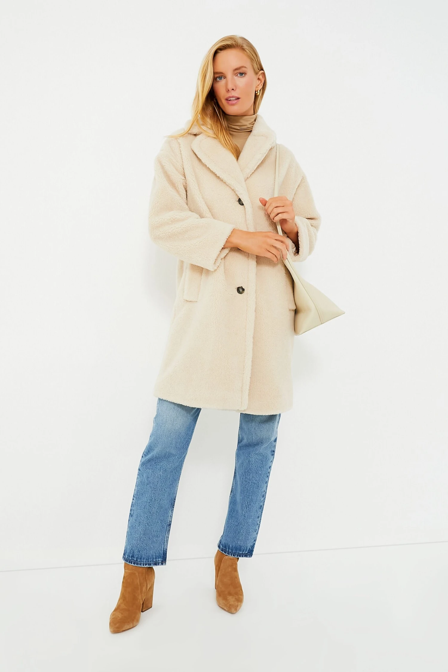 Cozy yet cool, the Beige Veber Coat is crafted from a luxurious sherpa material that has us craving cold weather days. Wide lapels act as an accessory so you can ditch the scarf, and hip pockets are added for extra functionality — making this an easy number to pull out of the closet on short notice. Style with go-to denim and sleek boots for an effortlessly chic outfit formula.