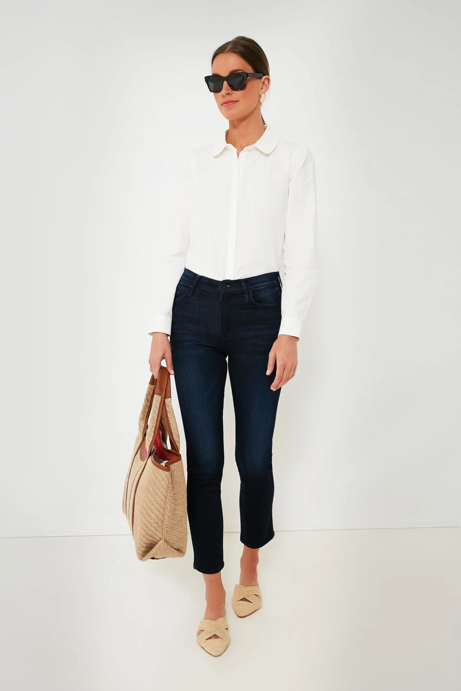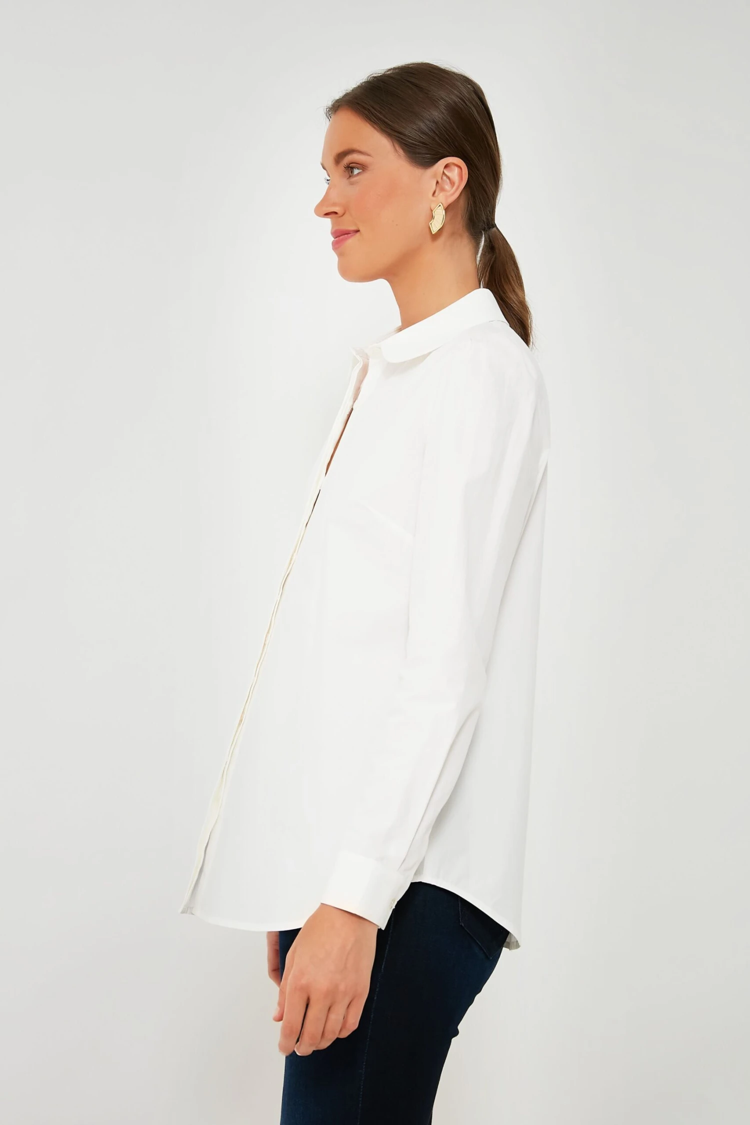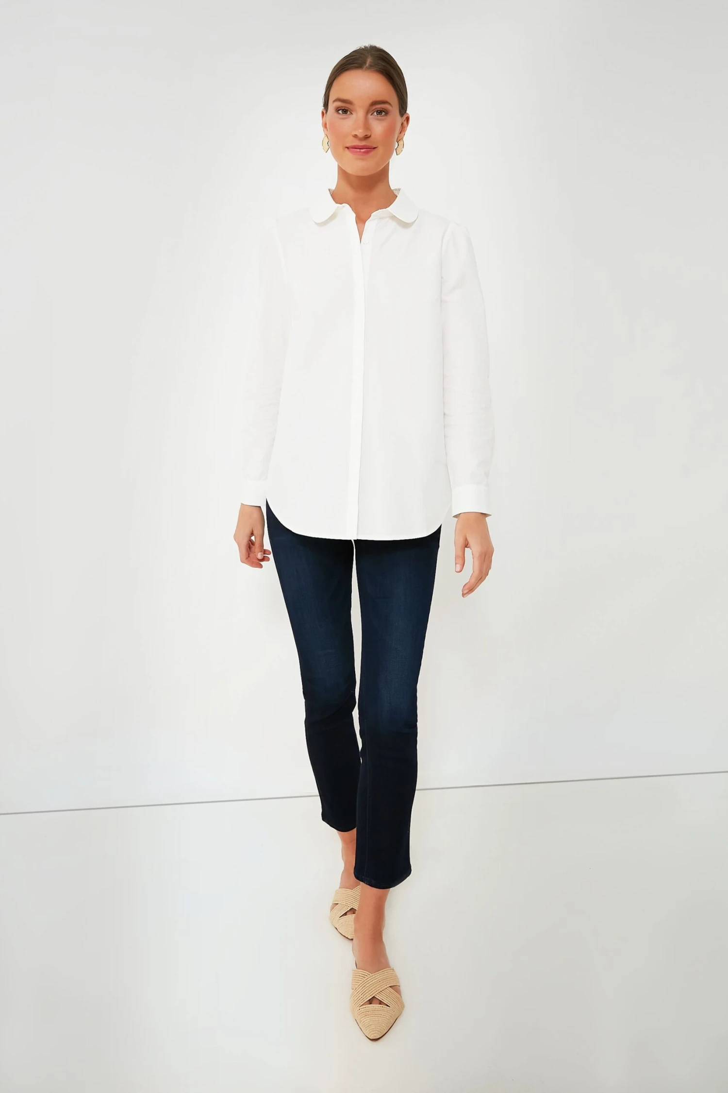 Every girl needs a perfect crisp white button down (or two, or three…)! The White Penelope Shirt features a subtle shoulder puff and a flirty peter pan collar. This blouse is the perfect mix of classic meets feminine, pair with everything from denim to trousers, sandals to sneakers, for easy year-round styling!